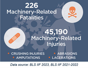 - Prevent contact — The guard should eliminate the possibility of any part of a worker’s body coming into contact with dangerous moving or otherwise hazardous parts. Workplace rules guiding safe work-practices should prohibit loose clothing, dangling hair, jewelry, or other exposures that could lead to pulled-into injuries.