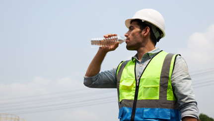 Construction workers account for fewer than 10% of the total workforce1, but historically experienced over 30% of all heat-related deaths.2 Construction workers who regularly work in direct sunlight, in enclosed spaces with elevated temperatures, next to heat-producing equipment or on surfaces that absorb and radiate heat such as asphalt or concrete are at risk of injury from heat exposure. When these conditions are combined, with strenuous physical activities, humidity, poor hydration practices, or personal health factors (such as medications, illness, pre-existing medical conditions, or being overweight), can quickly lead to a serious injury or fatality from a heat-related illness (HRI). HRIs occur when the body becomes unable to properly cool, resulting in a rapid rise in body temperature, or hyperthermia. HRIs include heat rash, heat cramps, heat syncope (fainting), rhabdomyolysis (death of muscle fiber), heat exhaustion or heat stroke.