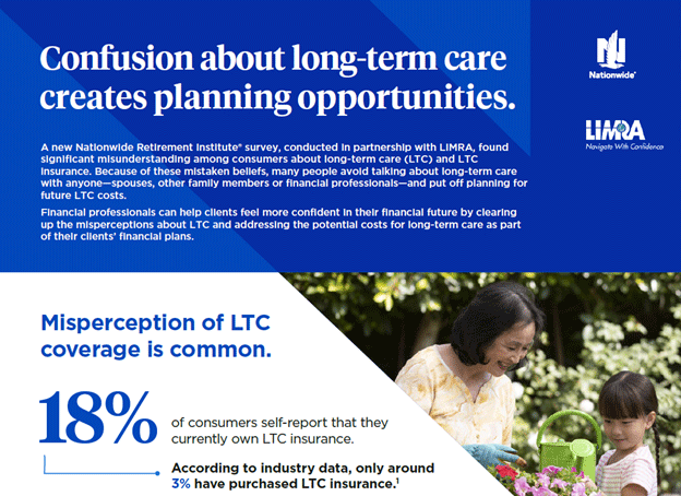 Despite the confusion about what long-term care is, it’s encouraging to see from our survey that the majority of people recognize the importance of LTC insurance. This can be the starting point as you connect with clients to help them plan for these potential expenses.