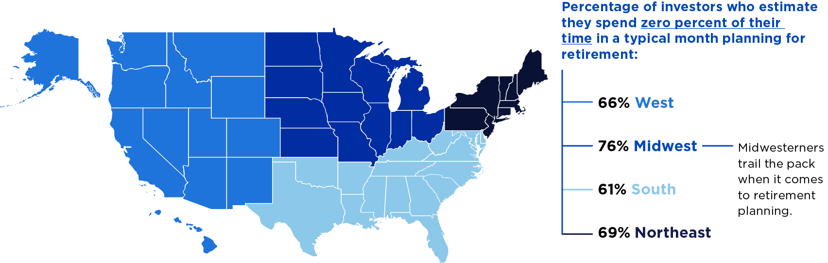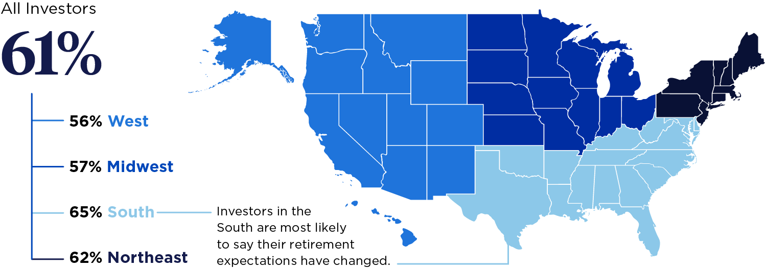 The Harris Poll, on behalf of Nationwide, conducted an online survey in the U. S. among 610 advisors and financial professionals and 2,496 investors ages 18+ with investable assets (IA) of $10K+, August 26-September 13, 2024. Among investors, there were 492 Northeasterners, 463 Midwesterners, 990 Southerners, and 551 Westerners. Among advisors, there were 135 Northeasterners, 137 Midwesterners, 195 Southerners, and 143 Westerners. The respondents were bucketed into each region based on the state they indicated living in.